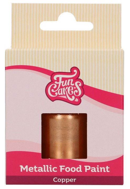 FunCakes ätbara metallicfärg ger dig möjlighet att skapa vackra effekter på olika typer av dekorationer såsom sockerpasta, marsipan, gum paste och royal icing. Färgen är enkel att använda genom att bara skaka flaskan och sedan pensla färgen på önskad yta. Den är 100% ätbar och torkar jämnt och väl. För extra effekt kan färgen även användas på kakor och sedan gräddas i ugnen för en glänsande finish!