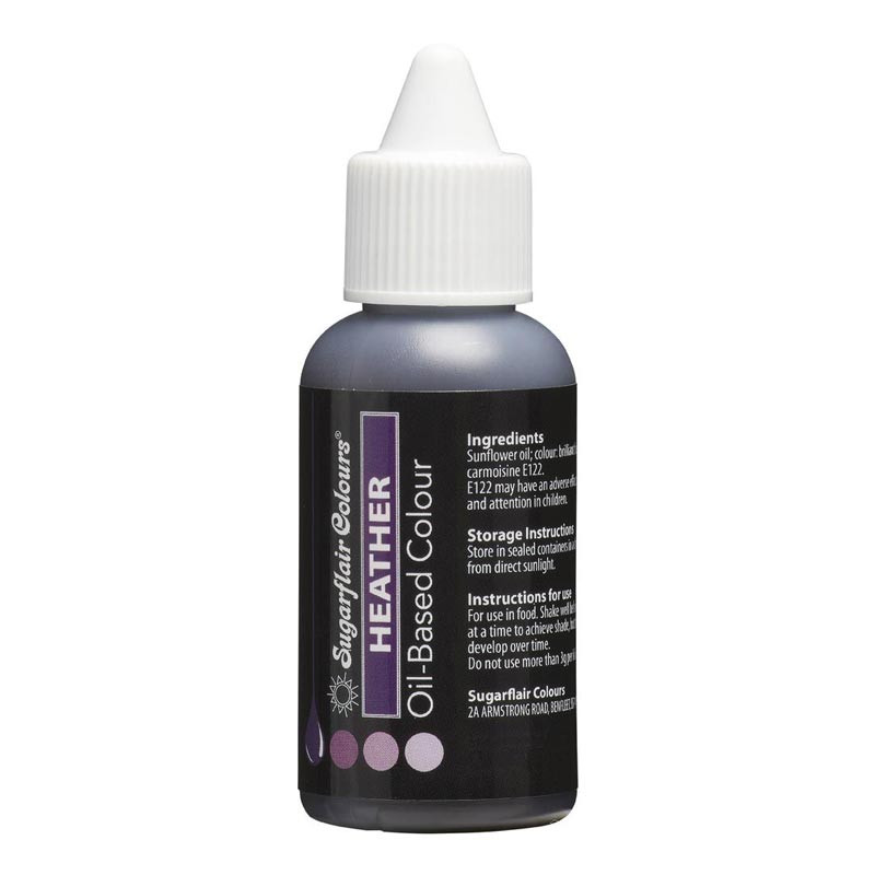 Den oljebaserade ätbara färgen från Sugarflair i nyansen Heather är perfekt för att färga dina tårtingredienser. Den har en lite tjockare konsistens för enkel användning och kan användas på choklad, smörkräm, sockerpasta och andra fettlösliga livsmedelsingredienser.