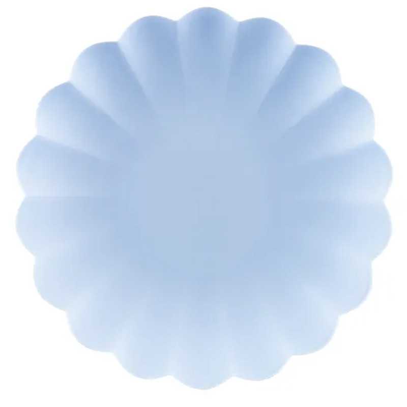 Dessa stilfulla plasttallrikar i modellen Frill ger en elegant touch till din dukning. Den ljusblå färgen och den vågiga kanten gör dem till ett vackert inslag vid kalas och bröllop. Perfekt att använda även vid mysiga sommarfester eller i husvagnen/båten för en kombination av stil och funktion. Tallrikarna är återanvändbara, vilket gör dem hållbara och praktiska för all typ av tillställningar. Matcha dem med andra produkter i samma serie för en enhetlig dukning!