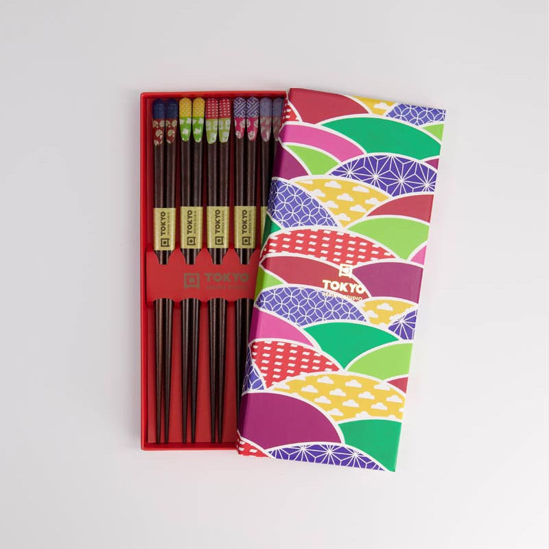 Dessa kinesiska ätpinnar i trä från Tokyo Design Studio är en stilren och färgglad addition till din köksutrustning. Med sina mixade mönster och färger längst upp blir varje måltid lite roligare. Tillverkade av trä är de lätta att rengöra och passar perfekt för att skapa en autentisk matupplevelse.