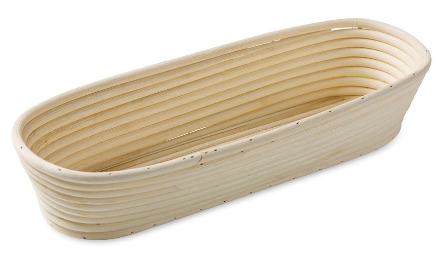 Denna avlånga jäskorg i rotting är perfekt för att skapa högre bröd med vacker yta och mönster. Dess kanter ger stöd till degar som behöver jäsa på höjden, vilket resulterar i ett vackert bröd med en unik touch.