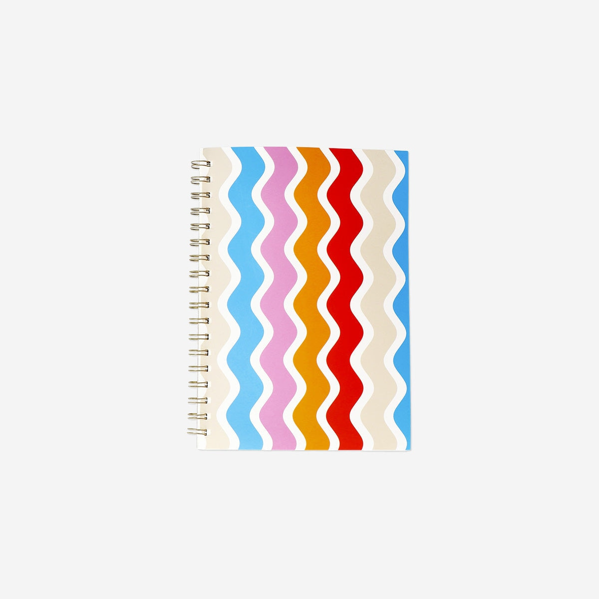 Denna B5-linjära spiralbundna anteckningsbok är perfekt för att hålla ordning på dina anteckningar. Med ett livfullt flerfärgat omslag och ett vågigt mönster ger den en elegant touch till din arbetsyta. Anteckningsboken är tillverkad av papper och erbjuder en slät skrivyta för anteckningar, dagboksanteckningar eller planering. Den praktiska spiralbindningen gör att sidorna ligger platt, vilket gör det bekvämare att skriva.