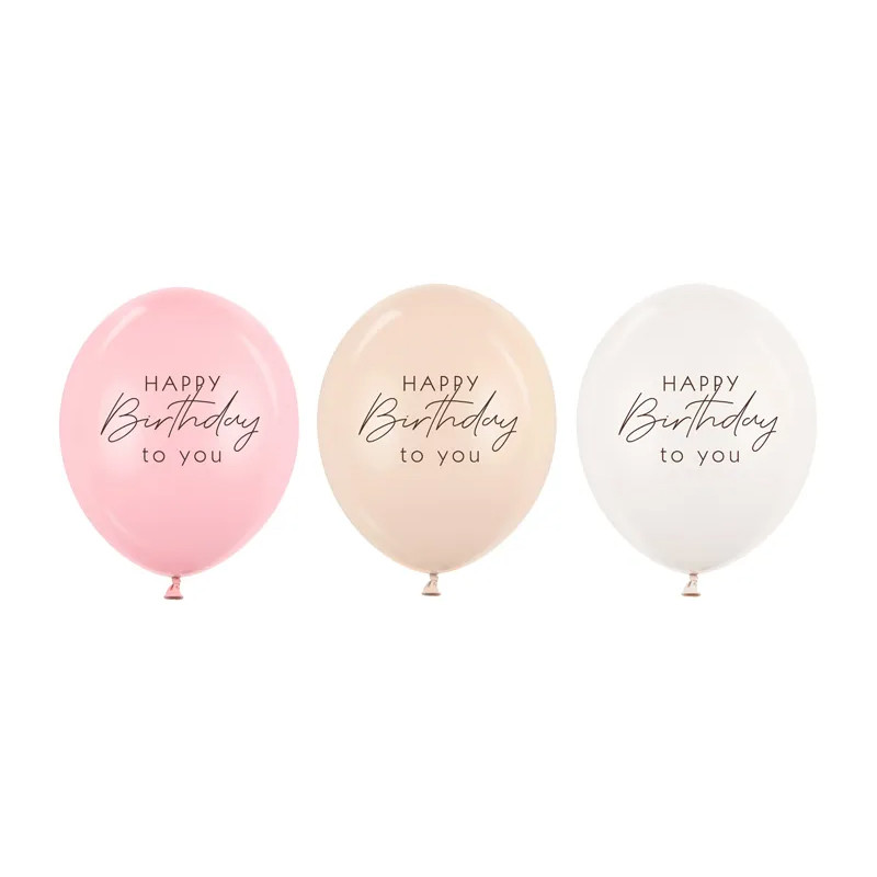 Denna stora ballongmix i rosa, aprikos och vitt ger din födelsedagsdekoration ett mjukt och festligt uttryck. Med dubbelsidigt tryck av texten ”Happy Birthday to you” blir ballongerna en genomtänkt detalj i både barnkalas och vuxenfester. Setet innehåller 50 ballonger, vilket gör det enkelt att skapa ballongbågar, buketter eller fylla större ytor med färg. Färgkombinationen passar lika bra till prinsesskalas som till en 18-års fest och blir en fin dekoration.