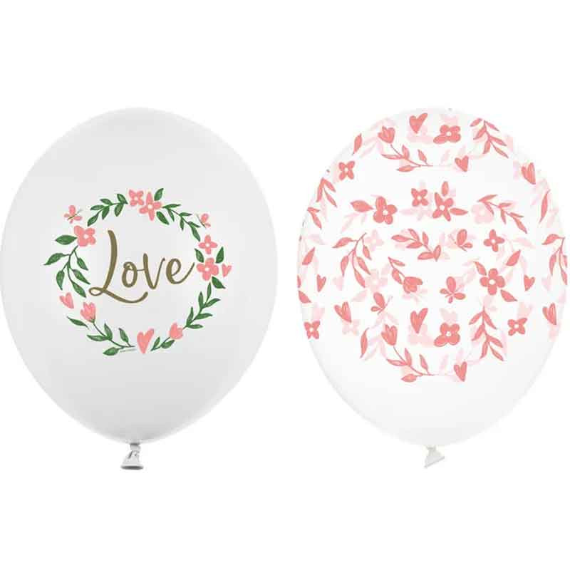 Ballonger Love Mix är en charmig mix av 50 ballonger i kärleks-tema från PartyDeco. Förpackningen innehåller ballonger i två olika designer: en med vit botten och texten ”Love” samt blommor, och en med klar botten och tryck av rosa blommor. Dessa ballonger på 30 cm är perfekta för att skapa en romantisk atmosfär på din fest eller evenemang.