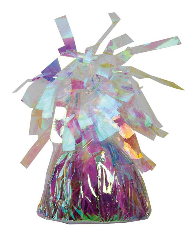 Denna skimrande ballongvikt i folie är den perfekta accessoaren för att hålla dina heliumballonger på plats under festen eller kalaset. Den är tillverkad i en härlig iridescent färg som ger en extra touch till din dekoration.