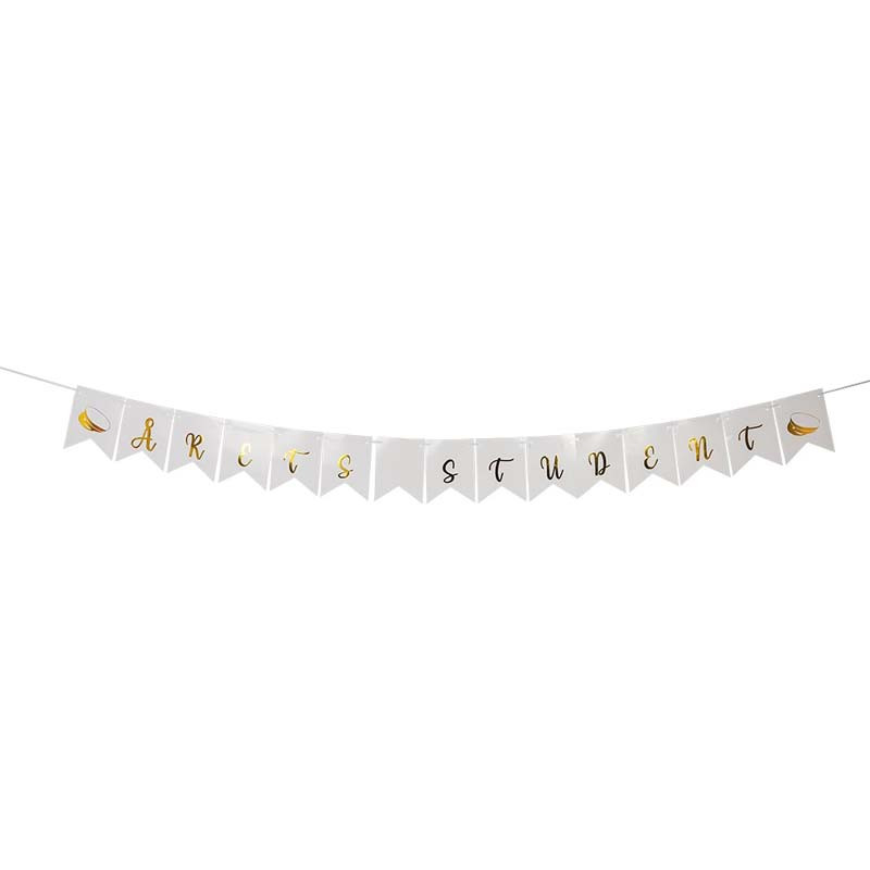 Denna banner med texten Årets Student och motiv av studentmössor är ett perfekt sätt att göra studenten oförglömlig! Den stilrena designen i vitt och guld passar alla typer av studentfiranden, från hemmafesten till trädgårdsminglet. Med en längd på 4 meter är den enkel att hänga upp och blir en snygg backdrop för studentbordet, fotoväggen eller entrén. Gör din studentfest komplett med denna eleganta banner!