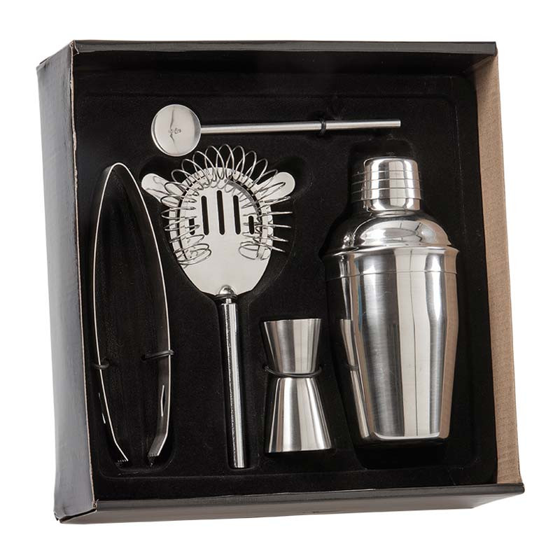 Ge din hemmabar en stilfull uppgradering med detta eleganta barset i rostfritt stål. Setet innehåller allt du behöver för att blanda och servera professionella drinkar, oavsett om du är nybörjare eller en erfaren hemmabartender. Barsetet kommer i en fin presentförpackning och är den perfekta gåvan för alla som älskar att experimentera med cocktails eller för den som vill höja nivån på sina bjudningar.