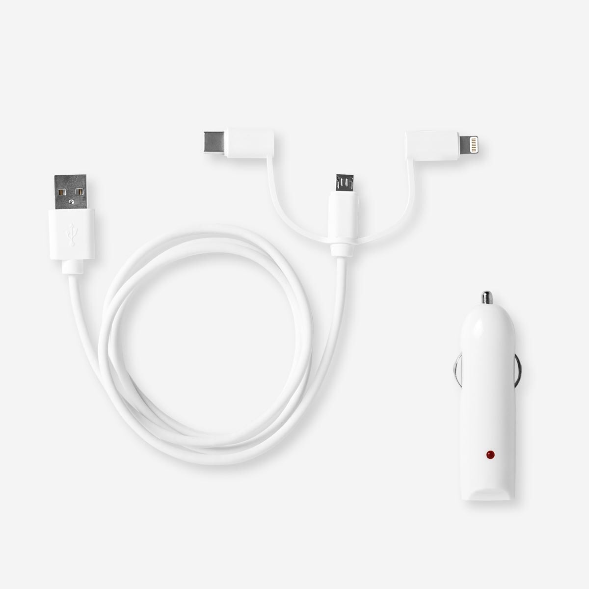 Denna biladdare passar alla smarttelefoner och är ett praktiskt tillbehör för att hålla dina enheter laddade under resan.