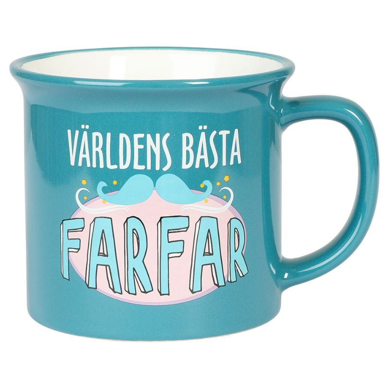 Den blå muggen med texten ”Världens bästa farfar” är en perfekt present för den speciella farfadern i ditt liv. Tillverkad av tåligt porslin, denna mugg tål både diskmaskin och mikrovågsugn, vilket gör den praktisk och användarvänlig.