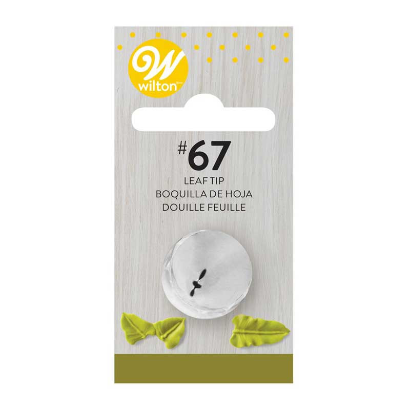 Bladtyll nr 67 från Wilton är en liten metalltyll perfekt för att skapa vackra lövdekorationer på tårtor och bakverk. Tyllen fungerar utmärkt med vispad grädde, smörkräm, majonnäs och andra krämiga fyllningar. En mångsidig verktyg för alla som älskar att dekorera!