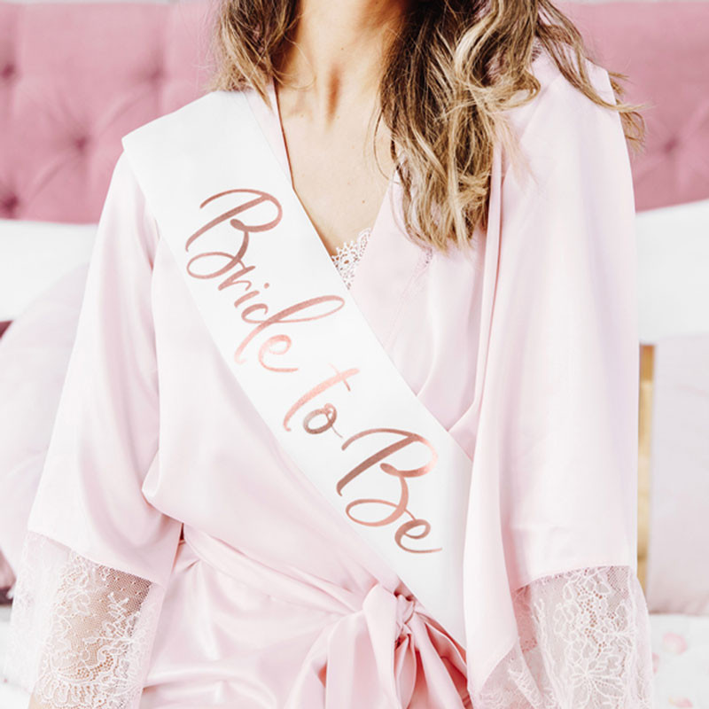 Detta ordensband/sash Bride to Be från PartyDeco är en perfekt tillägg till den blivande brudens möhippa. Bandet är vitt med texten Bride to Be i en elegant metallic roséguld. Med en bredd på ca 10 cm och en längd på ca 75 cm är detta sash ett stilrent och festligt tillbehör för den blivande bruden.