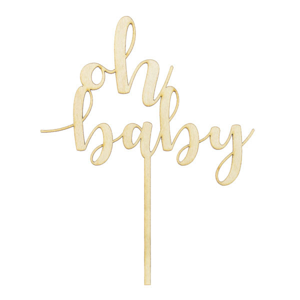 Dekorera din tårta eller bakverk med stil med denna trä cake topper från PartyDeco. Med texten ”oh baby” är den perfekt för dop eller babyshower.