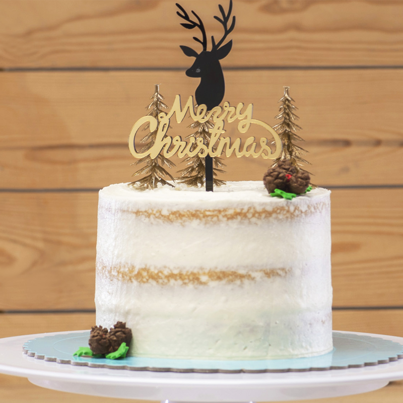 Dekorera julens tårta med denna vackra cake topper i skimrande guld och svart. Texten ”Merry Christmas” ger en festlig touch till din tårta och kan återanvändas flera gånger.
