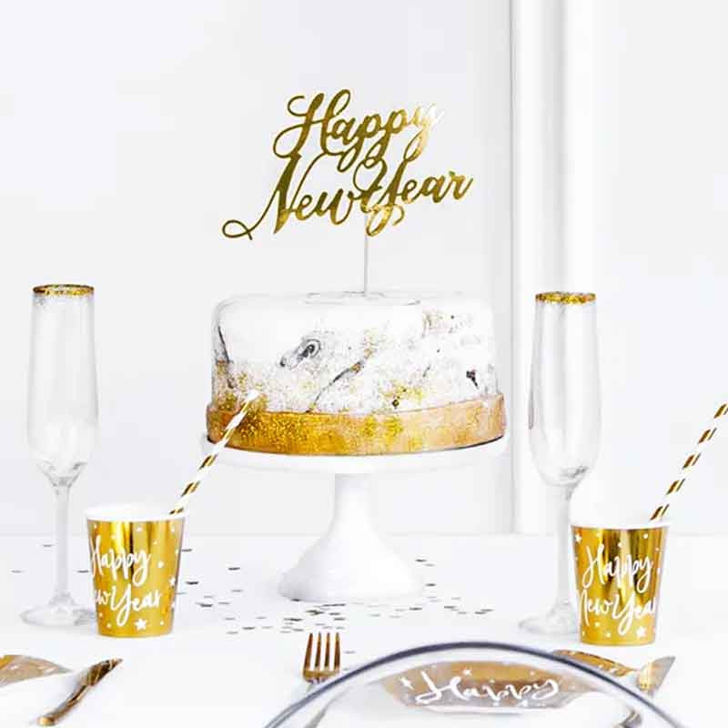 Cake topper nyår, guld – PartyDeco