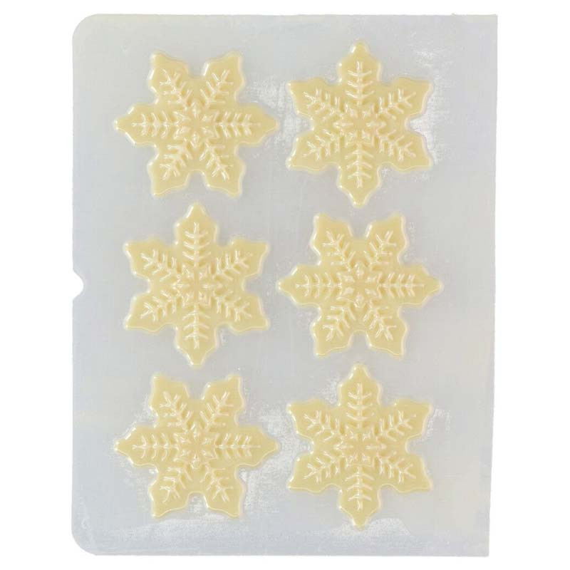 Dekorera dina bakverk med eleganta snöflingor i äkta belgisk vit choklad från FunCakes. Skapa magiska vintriga tårtor, cupcakes och desserter med dessa vackert detaljerade chokladdekorationer.