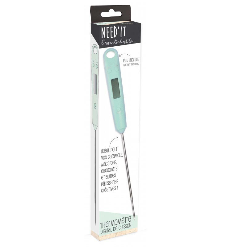 Denna enkla turkosa kökstermometer från ScrapCooking är ett perfekt verktyg för tillverkning av karameller, macarons eller choklad. Den stängs automatiskt av efter 10 minuter och mäter temperaturer mellan -50 ° C till + 300 ° C. Batteri ingår och termometern tål ej diskmaskin.