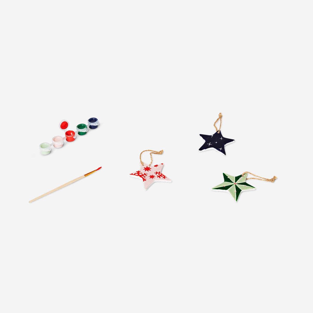 Dekorera din fest med personliga stjärnprydnader i keramik med detta DIY-set. Varje stjärna är tillverkad av vit keramik och mäter 8 x 0,5 x 8 cm, perfekt för målning och design. Skapa en unik touch till din juldekoration med detta charmiga och praktiska kit.