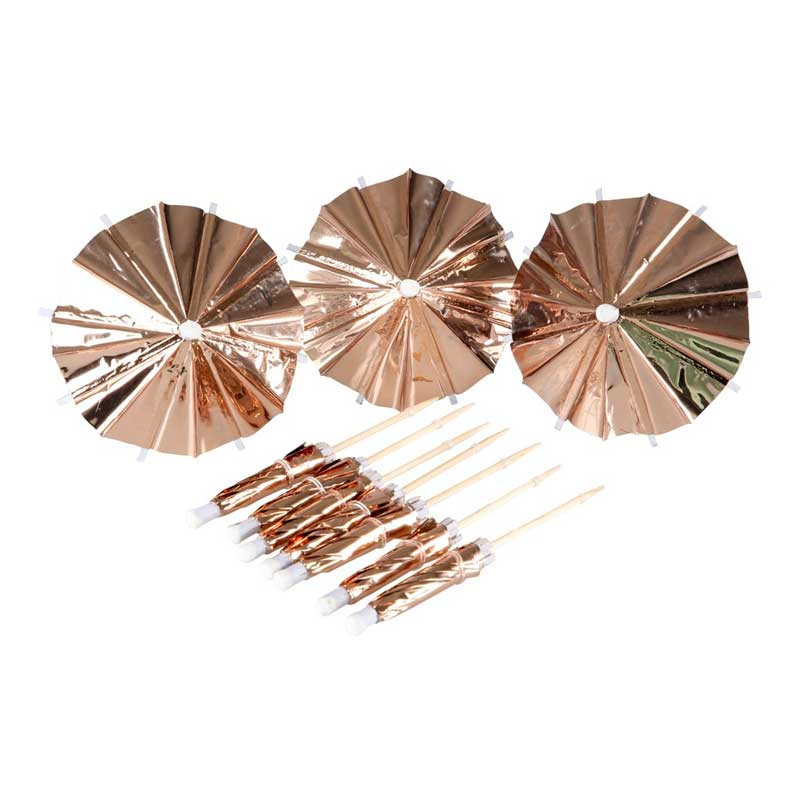 Dekorera drinken eller bakverken med dessa snygga cocktailpinnar i form av paraplyn i en snygg roséguld färg. Säljs i 10-pack och går att använda till drinken, plockmaten eller för att dekorera bakverk med. Perfekt till alla festligheter som student och kalas!