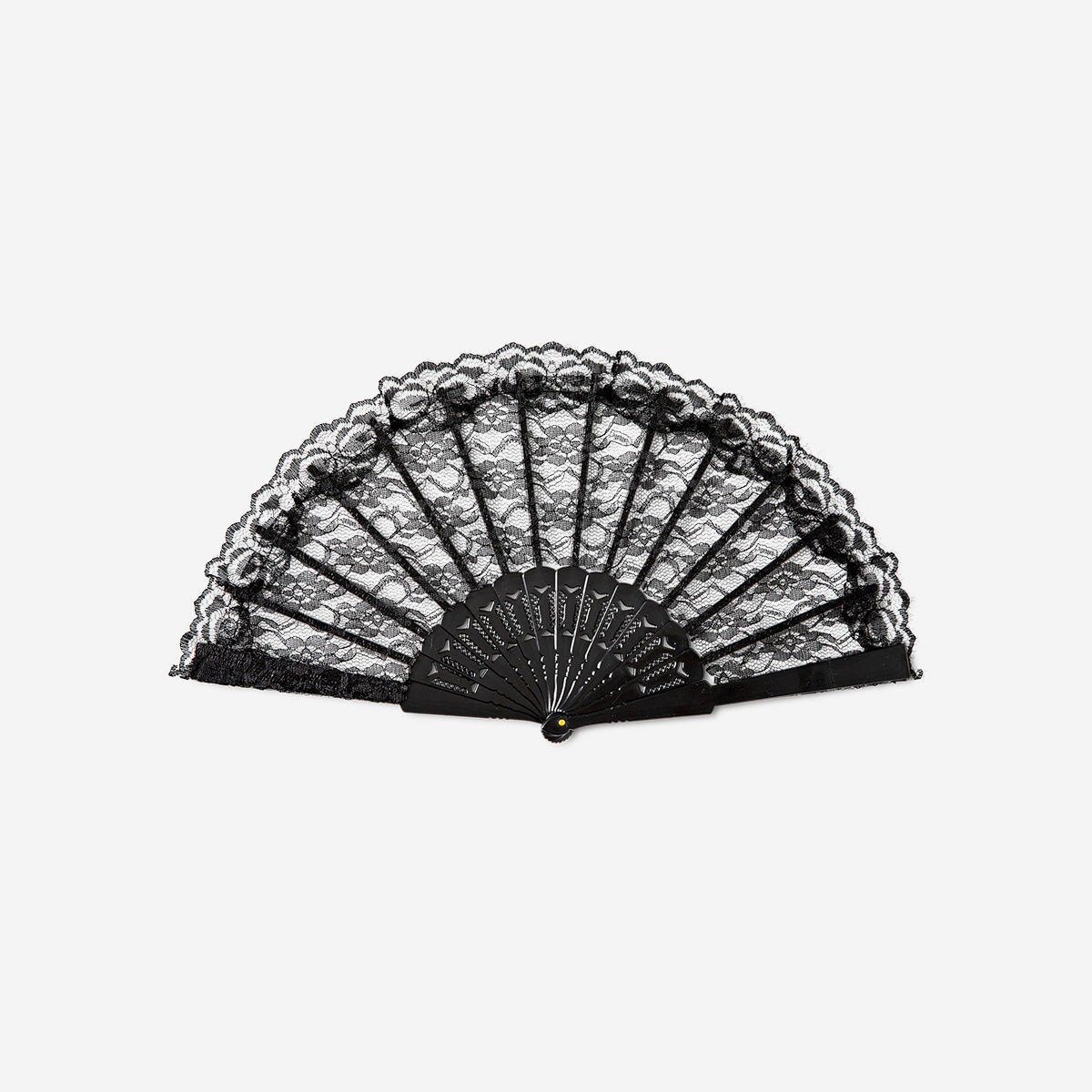 Denna hopfällbara spetsfläkt i svart ger en teatralisk touch till din look. Perfekt för vardaglig elegans eller Halloween-styling, den fina spetsen är placerad mot en plastram som kan vikas ihop för enkel transport. Med måtten 45 x 24 cm öppnar den sig brett när den är utfälld, skapar en dramatisk silhuett och är lätt att hålla i handen. Oavsett om den används till en kostym, varma dagar eller som en gotiskinspirerad accessoar, blandar denna fläkt vintagecharm med funktionell känsla. Dess vikbara design gör att den kan stoppas i en handväska eller ficka, redo att ge en touch av mystik och rörelse när det behövs.