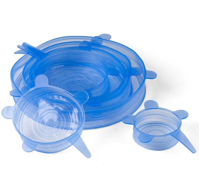 De sex flexibla silikonlocken är perfekta för att hålla maten färsk och skyddad. De är stretchiga och passar på de flesta skålar och burkar, oavsett form. Med dessa lock slipper du använda plastfolie eller folie och kan istället återanvända dem om och om igen. Du kan till och med använda dem på frukter som delats på mitten för att hålla dem fräscha längre. Dessa tåliga silikonlock tål diskmaskin och kommer i färgen transparent blå i storlekarna 6,5 – 9,5 – 11,5 – 14,5 – 16,5 – 21 cm.