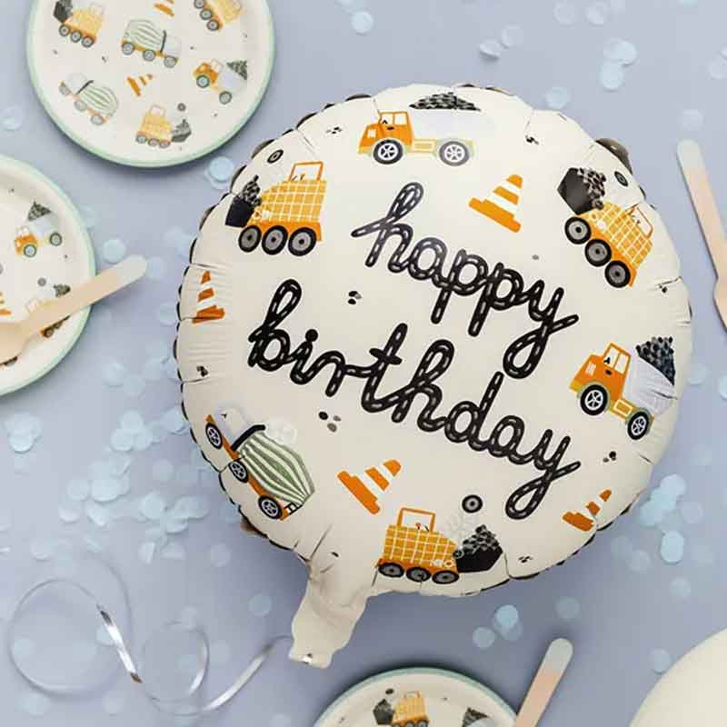 Den roliga folieballongen med tryck av traktorer och lastbilar från PartyDeco är den perfekta dekorationen för födelsedagskalas och fest. Ballongen mäter cirka 35 cm och kan fyllas med antingen luft eller helium. Den har en självslutande ventil och kommer med texten ”Happy Birthday”. Dekorera med denna söta ballong tillsammans med andra för ett lyckat traktor-kalas!