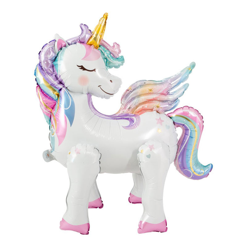Den här stora enhörningsballongen med måtten 68 x 57 cm är perfekt för att dekorera enhörningskalaset. Fyll den med luft eller helium för att få den att sväva!