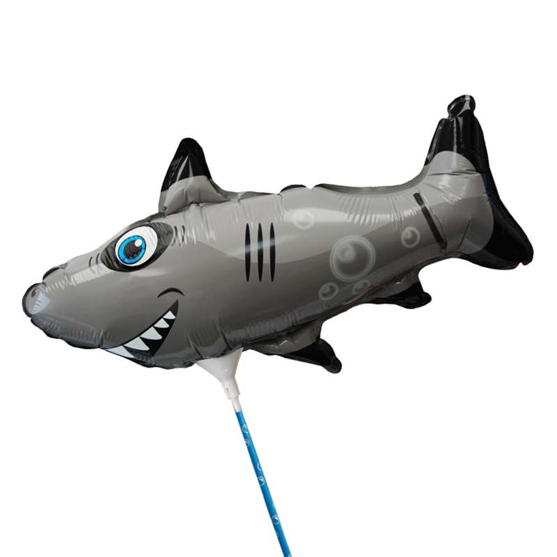 Dekorera ditt kalas med denna imponerande folieballong i form av en haj. Perfekt för piratkalas eller kalas med baby shark-tema, ballongen levereras med en praktisk pinne och hållare för enkel användning. Fyll den med luft eller helium för att skapa den perfekta atmosfären på festen.