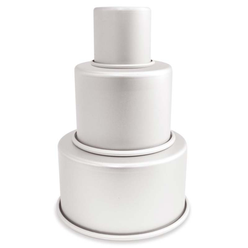 Du kan skapa imponerande våningstårtor hemma med detta set från ScrapCooking. Setet innehåller tre runda bakformar av professionell kvalitet, perfekta för speciella tillfällen som bröllop, dop eller födelsedagar. Med dessa djupa och slitstarka aluminiumformar kan du skapa en fantastisk våningstårta på över 30 cm höjd.
