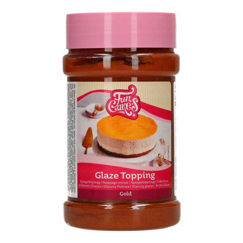 Dekorera tårtor, kakor och desserter med FunCakes Mirror glaze, även kallad cold gel. Ge bakverken en vacker, glansig yta med denna glaze! Mirror glaze är en sorts blank, glansig glasyr som ger tårtan eller kakan en riktigt snygg spegel-look. Denna mirror glaze är i en glittrig guld färg! Gör såhär: Rör om innan användning. Sprid ut glazen i ett jämnt lager på kakan med hjälp av en palettkniv.