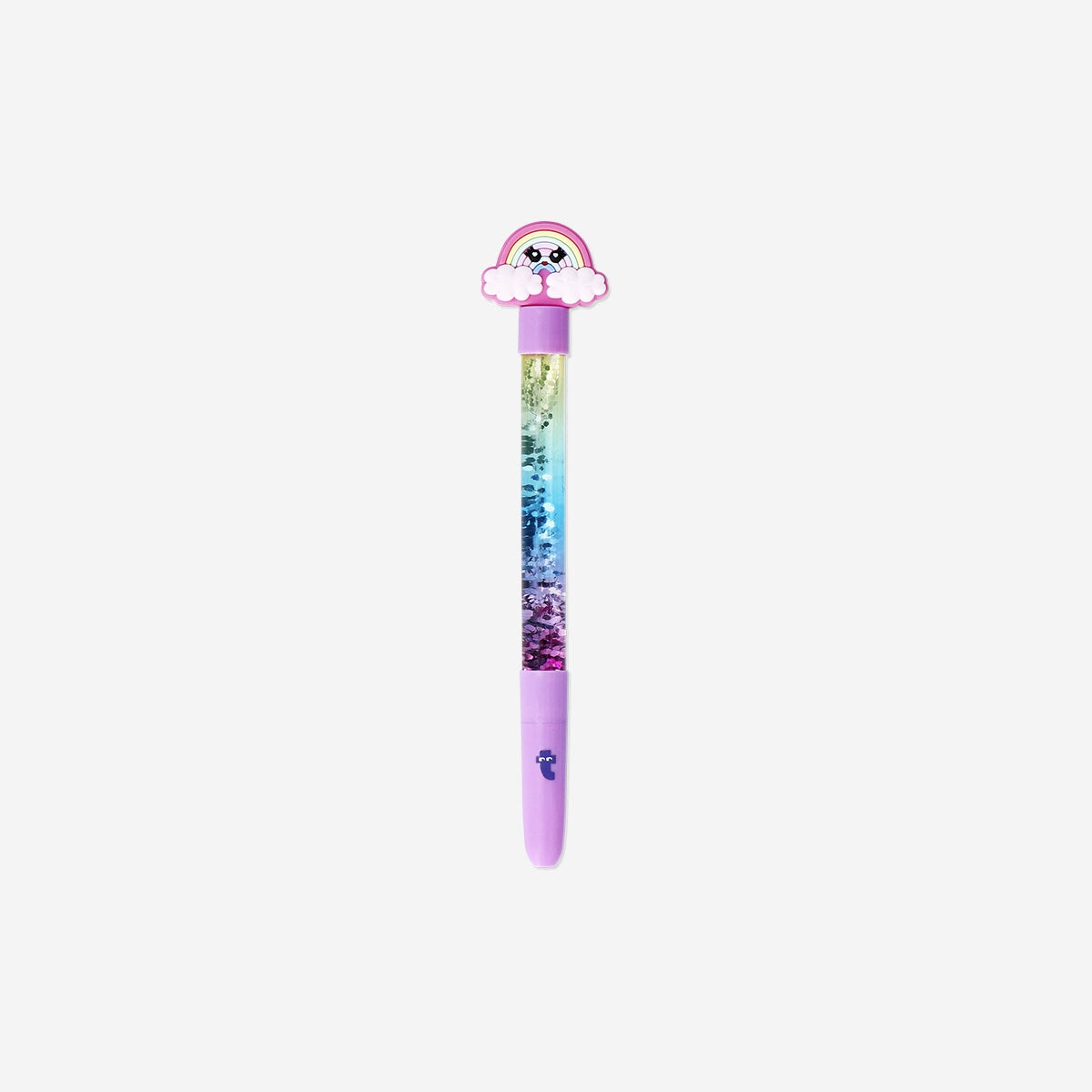 Denna regnbågsfärgade gelbläckpenna är perfekt för att lysa upp dina anteckningar och klotter. Den är utformad med en unik vätskefylld hylsa med flytande glitter som skapar en fascinerande effekt medan du skriver. Den mjuka silikondesignen ger ett bekvämt grepp för smidig skrivning, och det fina svarta gelbläcket ger precision. En rolig regnbågsfärgad topp ger extra charm och gör den här pennan till ett utmärkt val för alla som älskar skrivpapper.