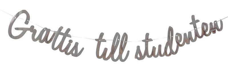 Girlangen Grattis till Studenten i silver är den perfekta dekorationen för att fira en student. Med dess snirkliga silverfärgade bokstäver blir den en fin detalj att hänga upp vid studentfesten. Den är mångsidig och kan placeras både inomhus och utomhus, oavsett om det är mot en vägg, i trädgården eller över bordet.
