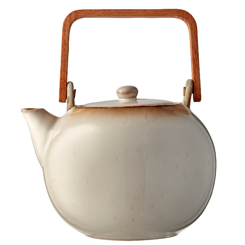 Den Gräddvita tekannan med tesil från BITZ är tillverkad i robust stengods och rymmer upp till 1,2 liter ditt favoritte. Med en elegant vit färg och reaktiv glasyr, ger den en antik design till ditt kök. Handtaget är gjort av ek och är säker fastsatt med mässingnitar för en hållbar användning.