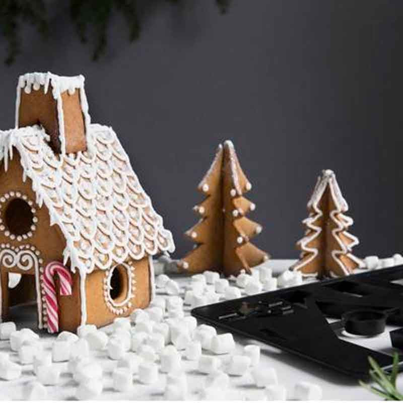 Dekorera ditt pepparkakshus med fina julgranar med hjälp av denna mall för julgranar. Skapa en komplett julgran med två avtryck i pepparkaksdegen. Tillverkad i hårdplast och BPA-fri.