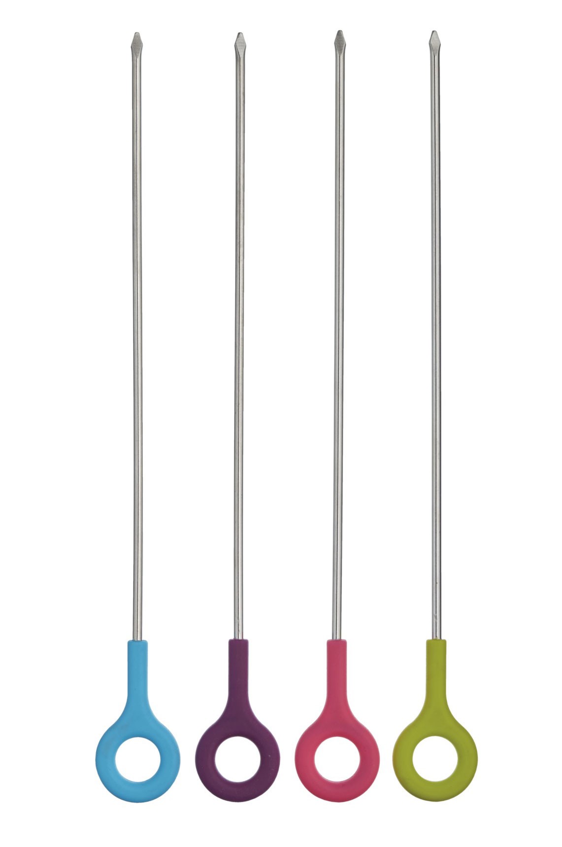 De färgglada grillspetten från Colourworks är perfekta för att grilla kött, grönsaker, kyckling eller frukt. Med silikonhandtag som inte blir varma kan du njuta av att grilla utan att riskera att bränna dig. Paketet innehåller 4 stycken spett med en längd på 30,5 cm var.