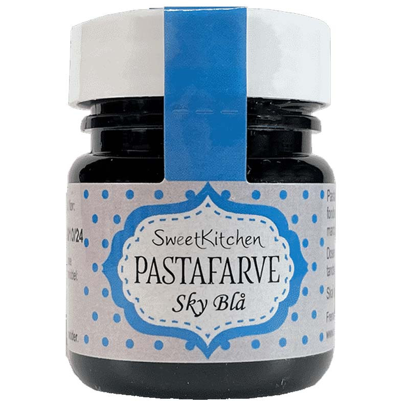 Denna himmelsblå pastafärg från SweetKitchen är perfekt för att färga grädde, sockerpasta, marsipan, deg, glasyr, isomalt med mera. Den är glutenfri, GMO-fri och lämplig för vegetarianer. Med ett innehåll på 25 g är denna pastafärg mycket dryg och ger ett vackert sky blue resultat till dina bakverk.