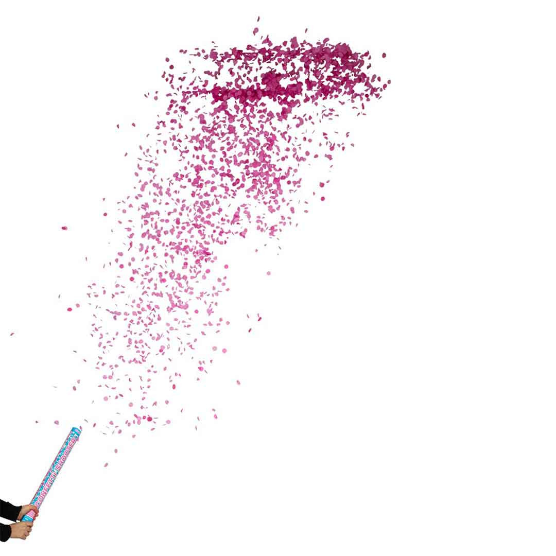 Skapa en minnesvärd gender reveal med denna rosa konfettikanon! Den perfekta produkten för att avslöja barnets kön på ett roligt sätt. Med en längd på 60 cm och en bredd på 5 cm, är denna konfettikanon ett imponerande val för ditt evenemang. Använd den både inne och ute för att sprida glädje och färg!