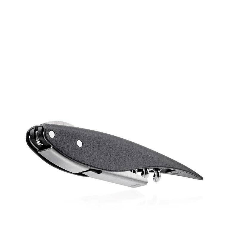 Denna elegant designade korkskruv från Zone Rocks är både praktisk och stilren. Med en fjäderdräkt och en böjbar arm är det enkelt att öppna din flaska i två steg utan att anstränga dig. Korkskruven är tillverkad i stål och har en inbyggd folieskärare samt en öppnare för enkel användning.