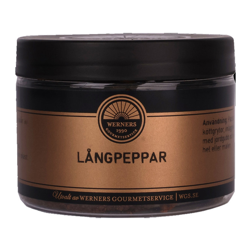 Långpeppar, utvald av Werners Gourmetservice, är en kraftfull och fruktig peppar med en tydlig doft av rök och tjära. Denna krydda har en het karaktär med toner av trä, kanel och läder, vilket gör den perfekt för att krydda nöt, lamm, vilt, puréer, choklad och frukt. Långpeppar har en söt och mer aromatisk smak än svartpeppar och var den första pepparsorten som kom till Europa.