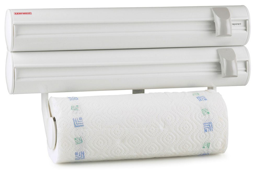 Leifheit Rolly Mobil Hushållspappershållare är en smart och praktisk förvaringslösning som gör det enkelt att ha både aluminiumfolie, plastfolie och hushållspapper nära till hands. Med denna samlade förvaring blir det lättillgängligt att hantera olika förpackningsmaterial i köket. En vit design som passar in i de flesta hem.