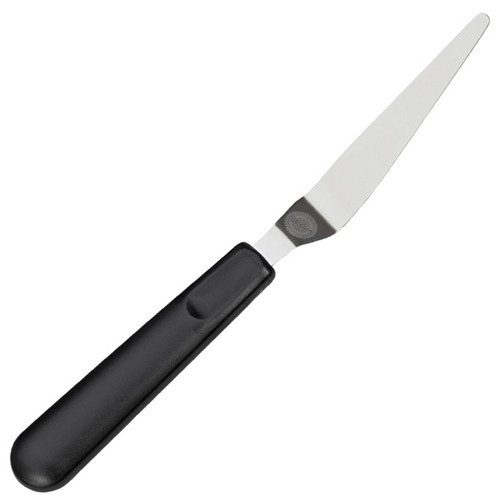 Denna lilla smala spatel från Wilton är perfekt för dekoration av cupcakes, tårtor och kakor. Med ett rostfritt blad och soft grip-handtag som ger ett ergonomiskt och bekvämt grepp, ger denna flexibla spatel dig bra kontroll när du utför dekorationsarbeten. Bladets längd är cirka 10 cm och den totala längden är 22,8 cm.