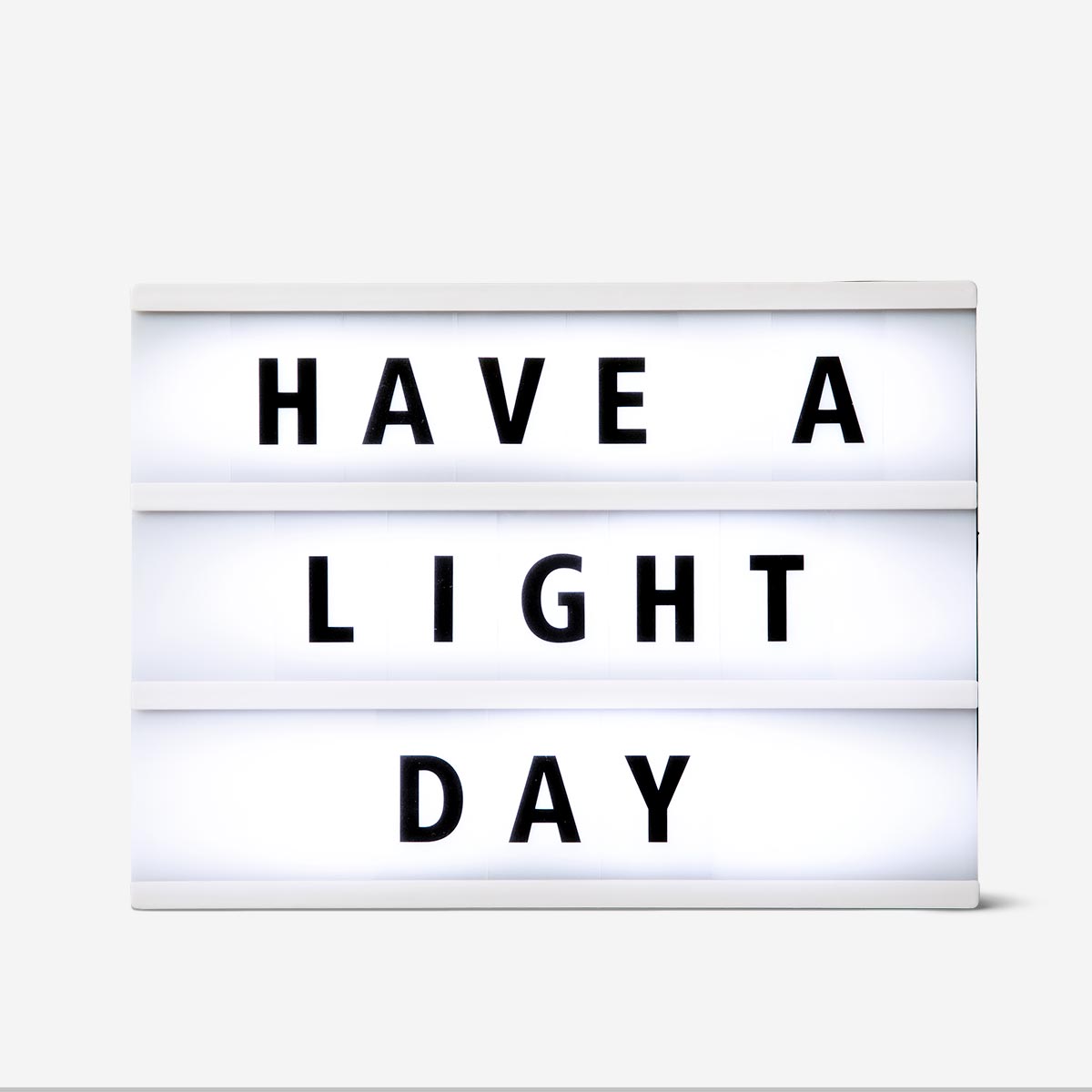 Den dekorativa ljuslådan A4 är perfekt för att skapa personliga meddelanden och citat. Ljuslådan kommer med 100 bokstäver och symboler, och drivs av 6 x AA-batterier (ingår ej). Här finns möjlighet att komplettera med ytterligare bokstäver, siffror och symboler för att skapa ännu fler kreativa kombinationer.