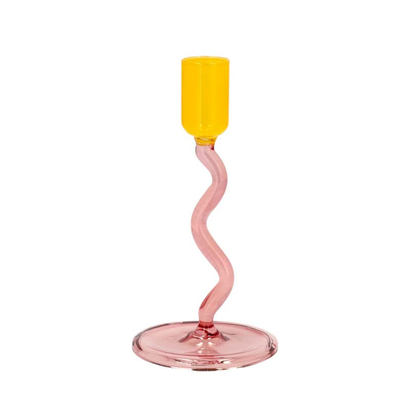 Skapa en färgstark inredning med denna vackra ljusstake i rosa och gul färg. Med sina mått på 8,5 x 15,3 cm och en vågig form är den en perfekt inredningsdetalj för ditt hem.
