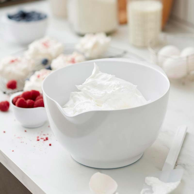 Den eleganta och tidlösa Margretheskålen från Rosti i färgen vit är en klassisk bak-, berednings- och serveringsskål som passar in i alla kök. Tillverkad i återvinningsbart plastmaterial, Durostima®, är skålen extra stark och stöttålig samt tål maskindisk, mikrovågsugn och frys.