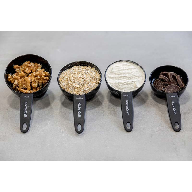 Denna fyrdelade måttsats i plast från KitchenCraft är perfekt för de som följer amerikanska recept. Setet innehåller åtta olika mått tack vare de dubbla mätfunktionerna på varje del. Med magnetiska kopplingar hålls måtten enkelt ihop, vilket sparar plats och gör det lätt att hitta dem i kökslådan. Måtten är lätta att använda och tål endast handdisk, vilket säkerställer lång hållbarhet. Ett smidigt och praktiskt verktyg för exakta mätningar vid bakning och matlagning.
