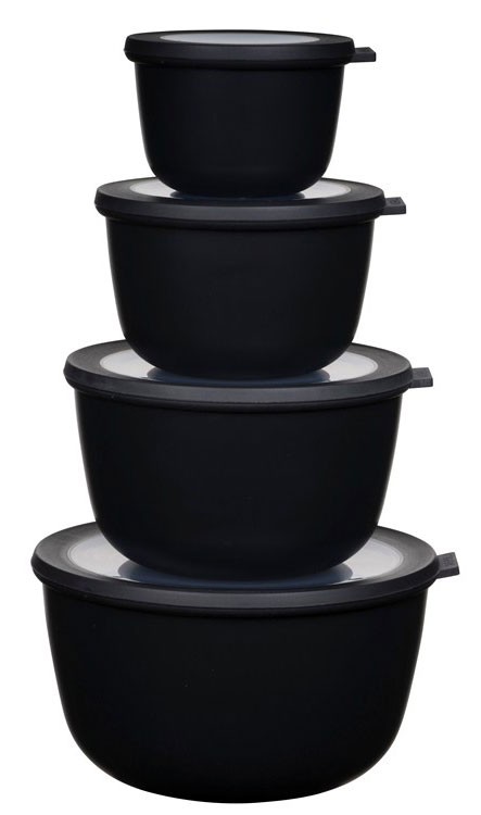 Dessa snygga Mepal skålar från serien Cirqula förenklar både bakning och matlagning. Tillverkade av robust och slagfast PP-plast, är de perfekta för matlagning, servering och förvaring. Skålarna levereras med lock för bekväm förvaring. Den stilrena svarta färgen ger en elegant touch till ditt kök. Setet innehåller fyra skålar i olika storlekar: 500 ml, 1000 ml, 2000 ml och 3000 ml.