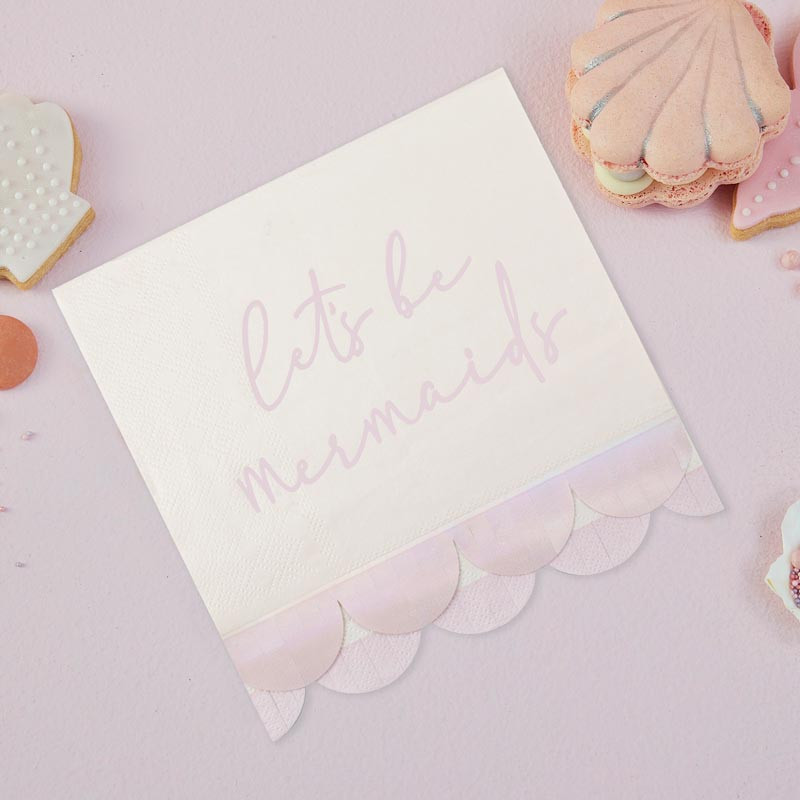 De söta servetterna med sjöjungfrutema i vitt och rosa är perfekta för att skapa en finskimmer på ditt nästa evenemang. Med texten ”Let´s be mermaids!” är de en rolig detalj som passar perfekt till sjöjungfrukalaset.