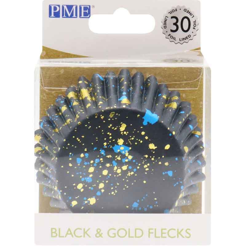 Dessa snygga muffinsformar från PME i svart med stänk av guld och blått är perfekta för att skapa läckra muffins och cupcakes. Tillverkade av högkvalitativt papper för bästa resultat rekommenderas det att använda formarna tillsammans med en muffinsplåt vid gräddning. Varje förpackning innehåller 30 stycken formar med en diameter på 5 cm.