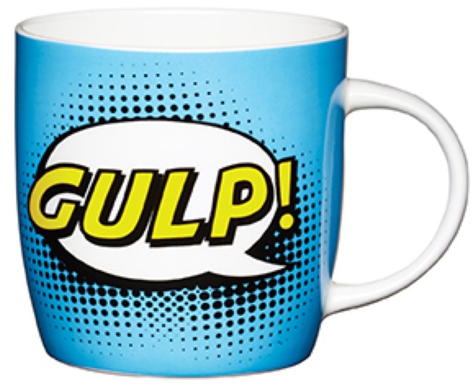 Den snygga Mugg Gulp! från KitchenCraft är tillverkad i porslin och har ett unikt serietidnings-motiv på en blå botten. Muggen är perfekt för att njuta av din favoritdryck som kaffe, te eller varm choklad. Med ett bekvämt öra och en volym på 425 ml är denna mugg en trevlig och praktisk tillägg till köket.