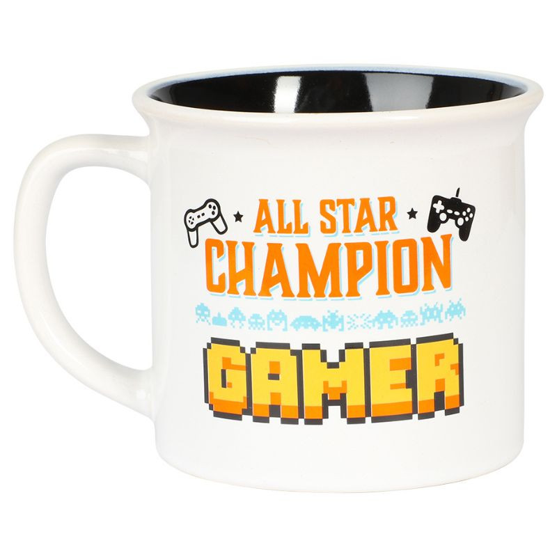 Den vita muggen med texten ”All star champion gamer” är en rolig present till alla gamers där ute. Med en storlek på 9 x 10 cm är det den perfekta muggen för att njuta av en varm dryck medan du spelar dina favoritspel.