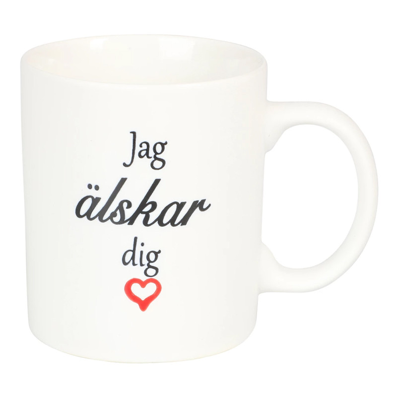 Denna stilrena keramikmugg med en kapacitet på 350 ml är dekorerad med den kärleksfulla texten ”Jag älskar dig” samt ett rött hjärta. En tidlös design som sprider värme och omtanke, perfekt som present för Alla hjärtans dag, födelsedagar, jubileum eller bara för att visa din kärlek i vardagen.